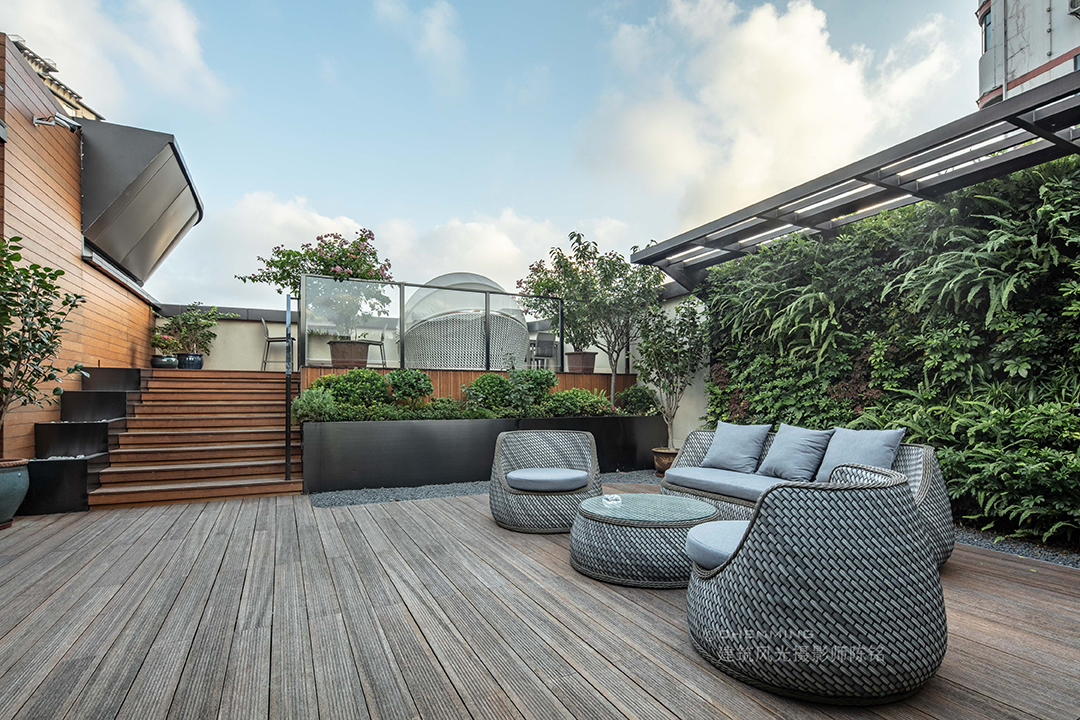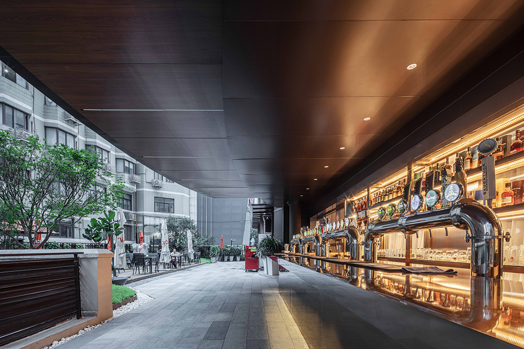 屋頂原為設(shè)備機(jī)房,并未得到充分利用,現(xiàn)改造成為酒吧與空中花園,不僅是豐富了空間的復(fù)合性,還增加了場所的凝聚性及互動性。在花園中俯瞰中山公園,就能以自然直覺閱讀日夜和四季,亦能體會到人與城市及人與自然的和諧相處。