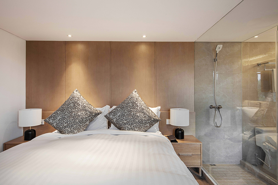 重新解讀當(dāng)代高階人群精致生活,是為了讓住戶有一個(gè)身心得以放松的精神家園。利用玻璃隔墻打造通透的衛(wèi)浴間,拆除吊頂,釋放空間。摒棄了矯飾與刺激感官的色彩,回歸溫潤、自然質(zhì)樸的材質(zhì),光影之下,簡于形,繁于心。