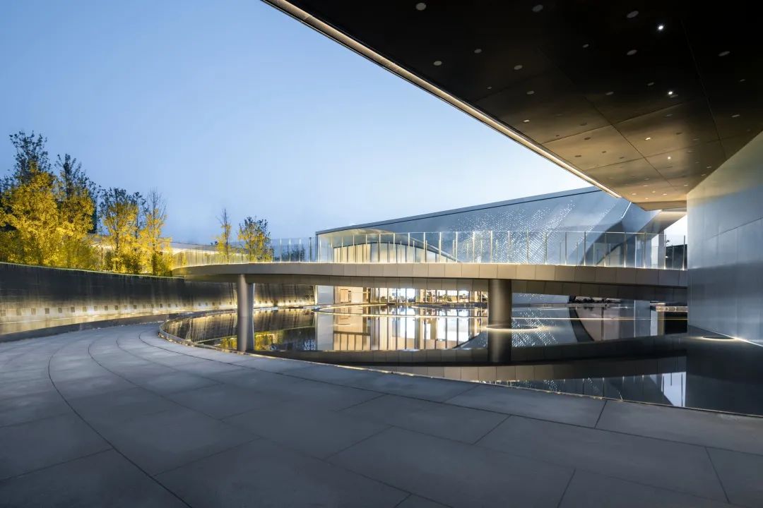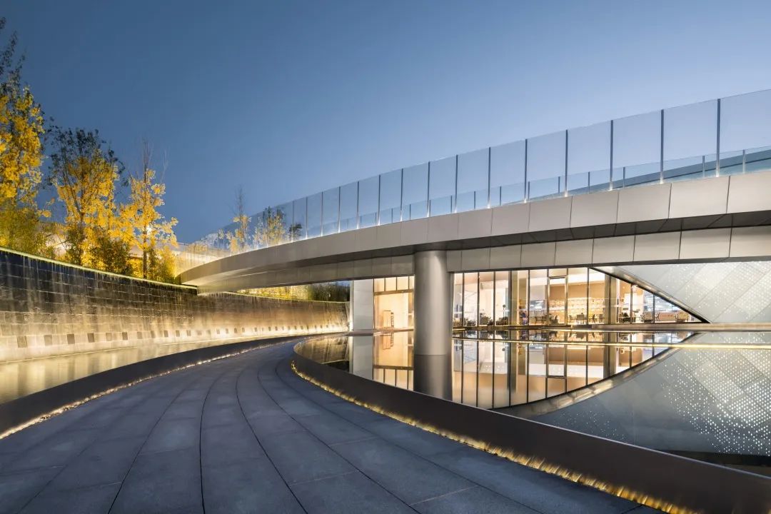 內(nèi)外一體:建筑猶如一個(gè)被交錯(cuò)廊橋包裹著的玻璃展品,形成城市道路邊獨(dú)特的視覺標(biāo)識(shí),展館內(nèi)的活動(dòng)也成為展示的一部分,吸引人們走進(jìn)場(chǎng)地,感受設(shè)計(jì)的敘事,瀏覽本身也成為展覽發(fā)生的一部分。