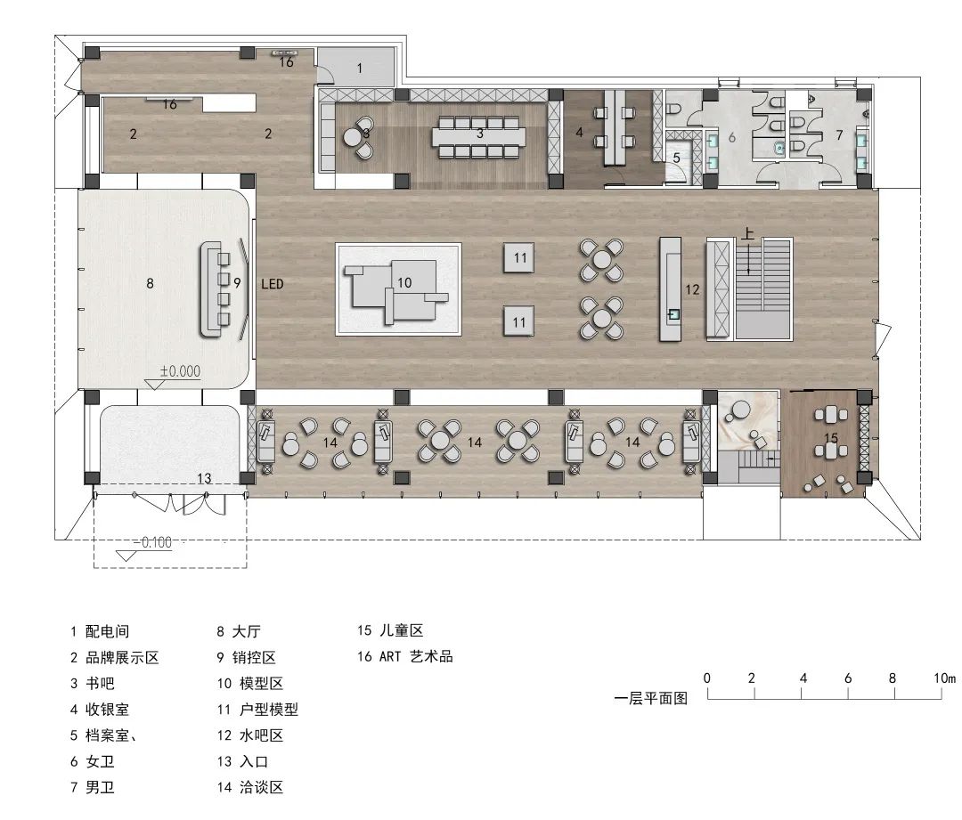 多空隙空間:挑高的回廊空間,橫向的尺度將空間的線性感完美的體現(xiàn)。半透的玻璃界定著空間,透漏著光影與空間,同時(shí)作為載體描繪著線性構(gòu)成的光的語(yǔ)言。充分利用灰空間實(shí)現(xiàn)建筑與景觀的柔和過渡,使兩者成為自然而有機(jī)的整體。