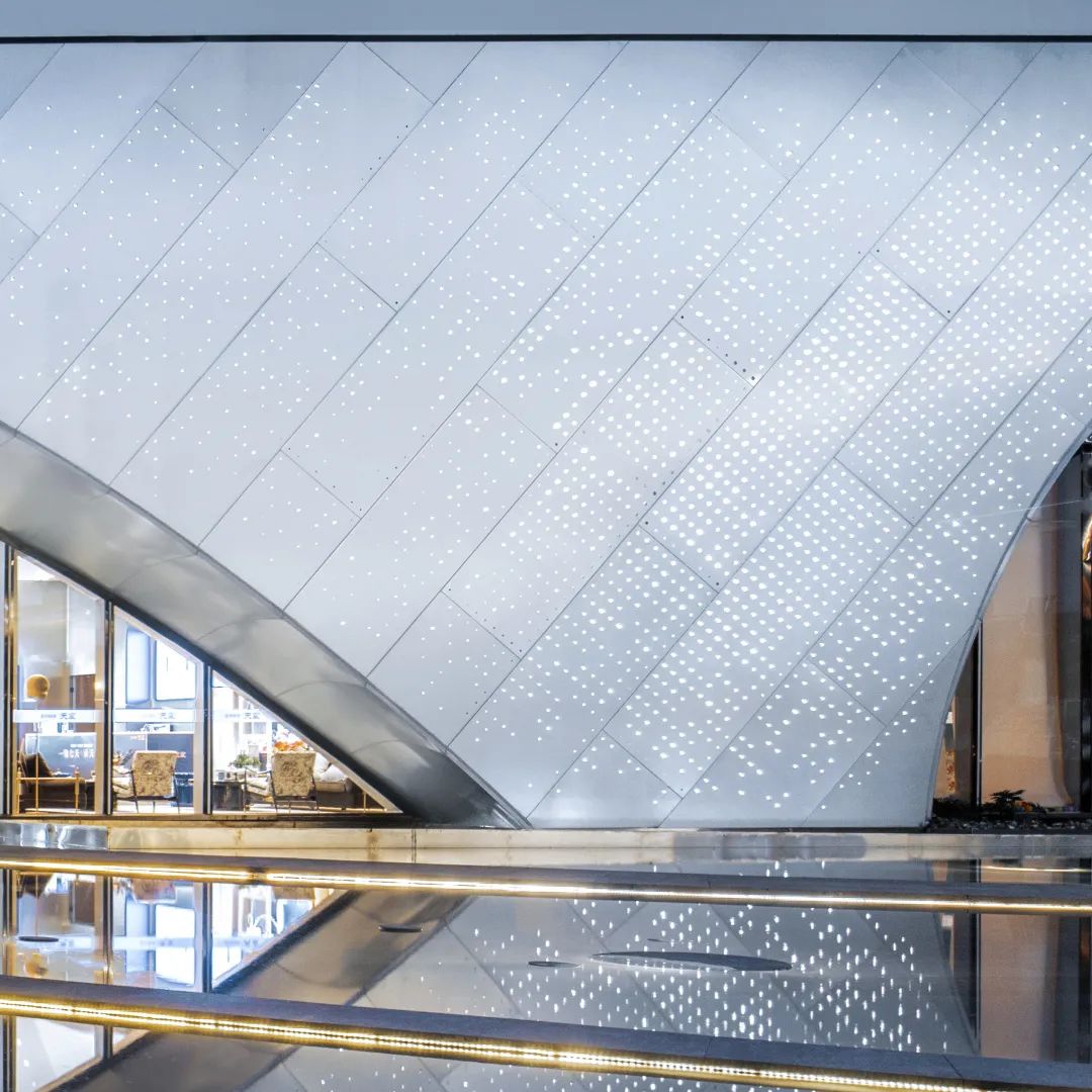 材料的構(gòu)造,細(xì)節(jié)的把控依然是我們?cè)O(shè)計(jì)追求的品質(zhì),鋁板表面的穿孔細(xì)心考究,結(jié)合燈光設(shè)計(jì)營(yíng)造出氣泡緩緩上升的感覺,輕盈動(dòng)感。