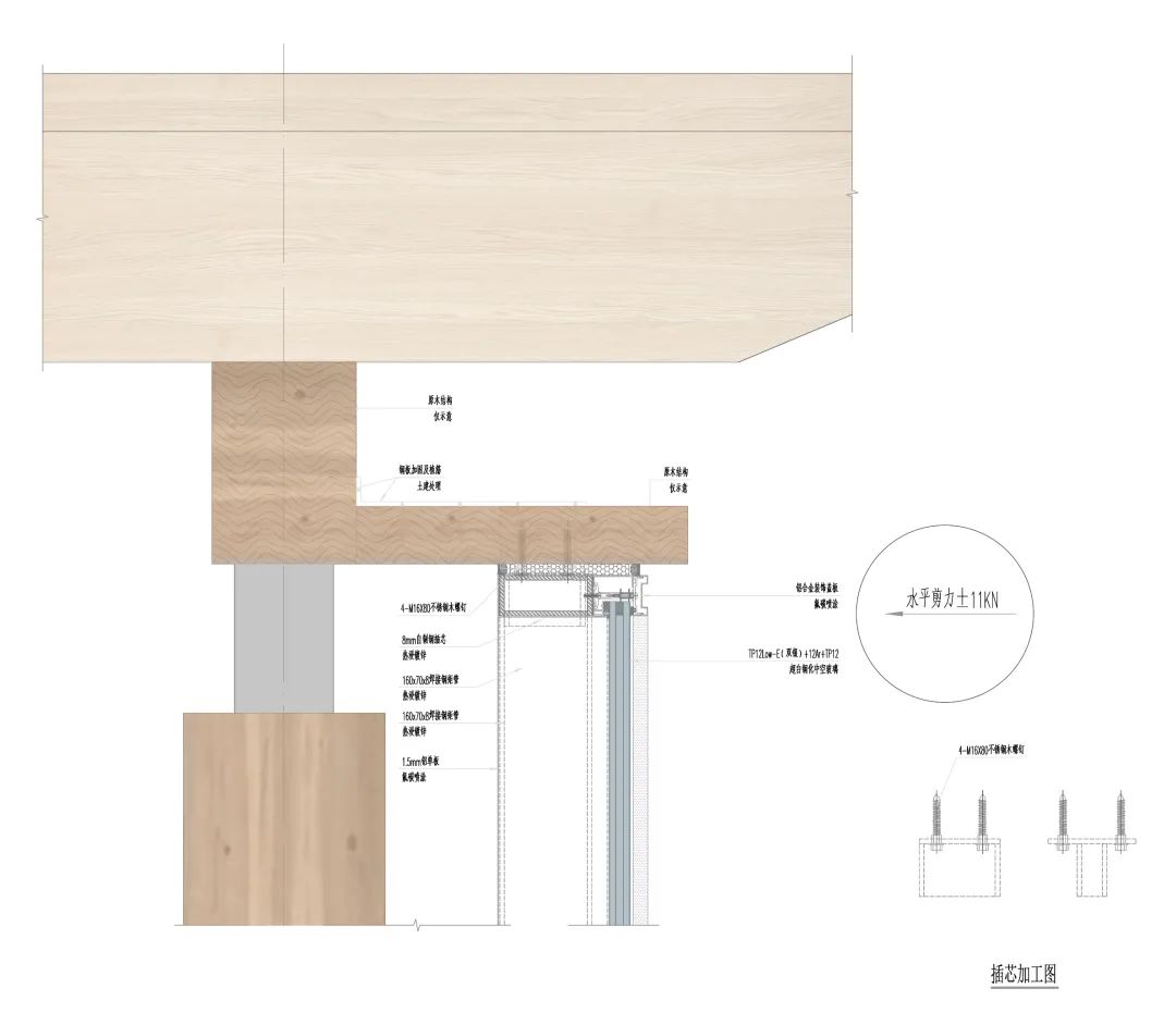 ▲幕墻與木結(jié)構(gòu)連接節(jié)點(diǎn)圖